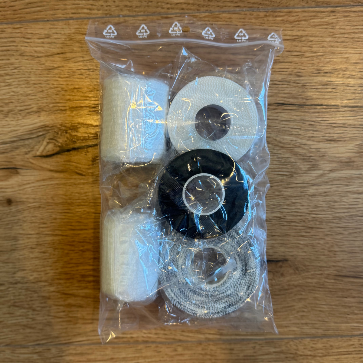 1 tape logo noir 2,5cm x 13,7m + 1 tape first blanc 2.5cm x 10m : pour emballer parfaitement et uniformément les mains
