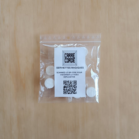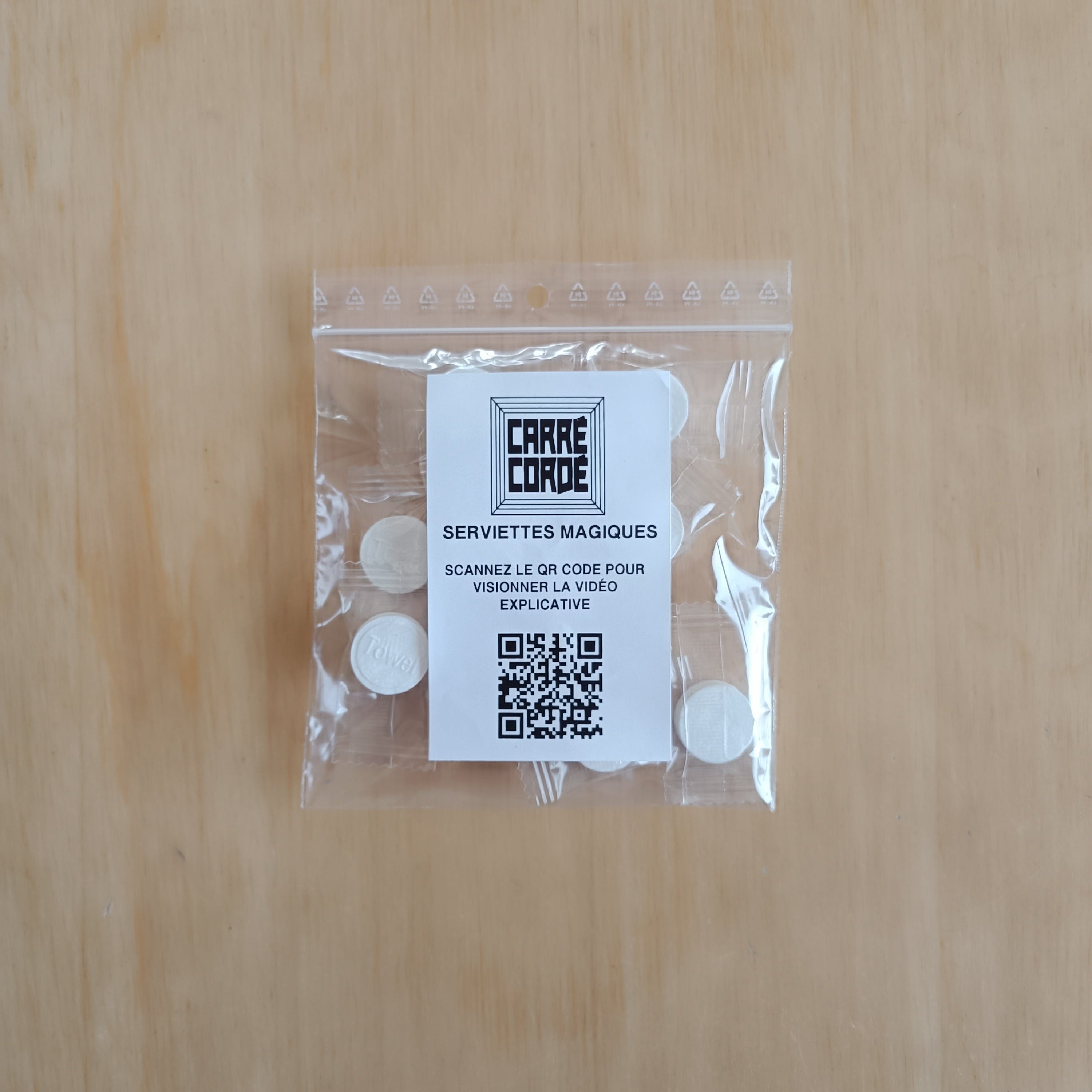 Une fois déplié, le tissu prend la forme d'une serviette fine de 20 cm x 22 cm.
